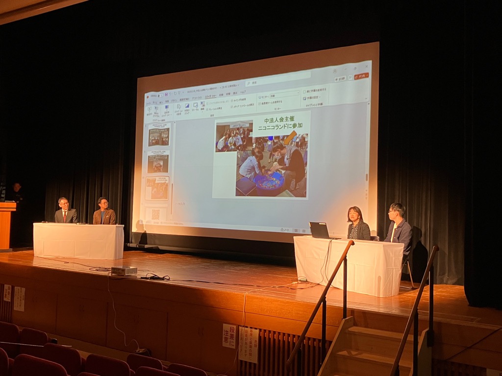当日は、リンクサポートもお手伝いして就労した20代の若者も登壇。80人余りの来場者を前に、Hさんが緊張しながらもマイクを握りました。