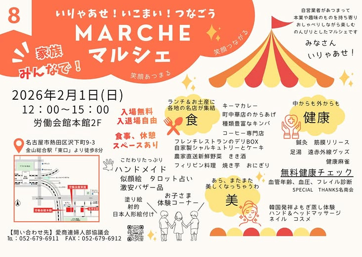 会場はイオンモール熱田のすぐ近くにある労働会館本館2階のワンフロア。雑貨や食品、体験コーナーなど盛りだくさんで、手作り雑貨や海外の食べ物など、ここでしか出会えない商品が並び、幅広い年齢層のお客様で終始にぎわっていました。
